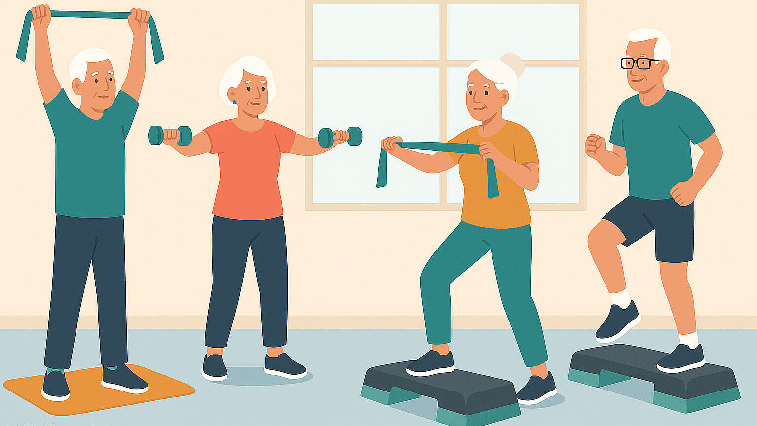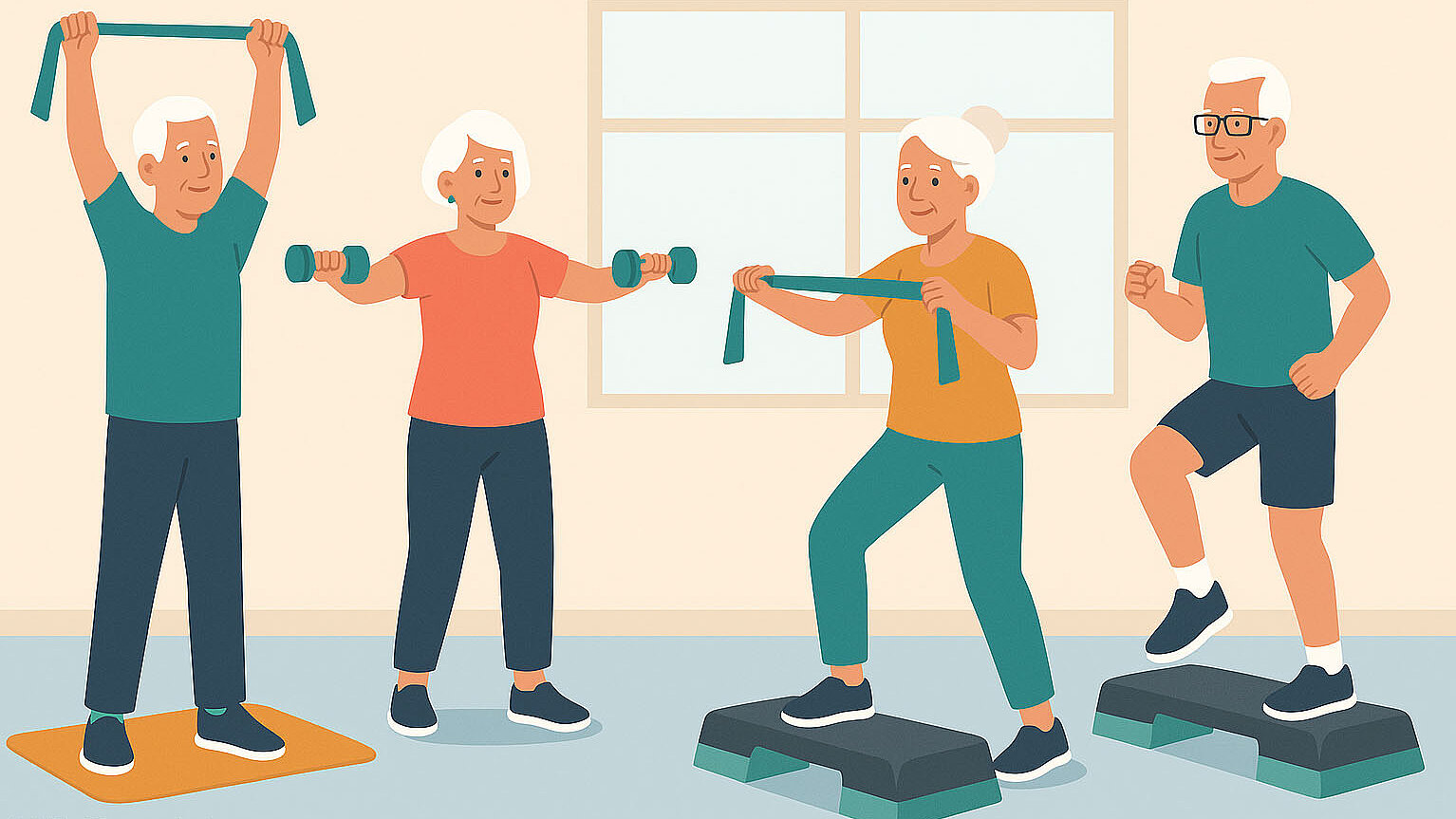 Ein praktisches Training, das gezielt die Fähigkeiten stärkt, die du für deinen Alltag im Alter brauchst. Beweglichkeit, Kraft, Koordination und Ausdauer werden effektiv und alltagstauglich trainiert.